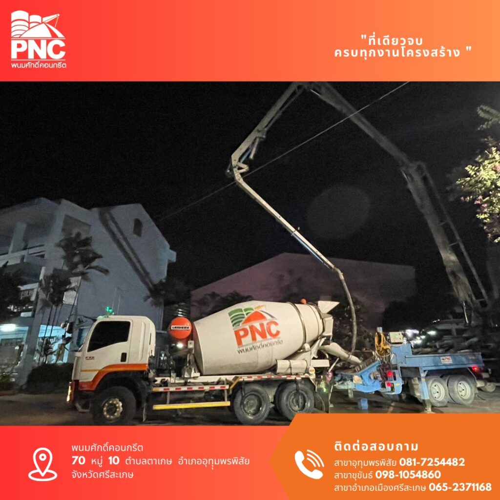 - ไม่ต้องเหนื่อยผสมเอง! พนมศักดิ์คอนกรีต จัดให้ครบ จบทุกขั้นตอน ส่งตรงคอนกรีตคุณภาพถึงหน้างานคุณ เหมือนมีผู้ช่วยมือโปร!